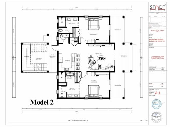 Model 2: Embrace island living at its finest with our two-bedroom, two-bathroom villa complete with a fully equipped kitchen and a comfortable living room. This model offers the perfect blend of functionality and comfort, ideal for couples or small families looking for a serene retreat.